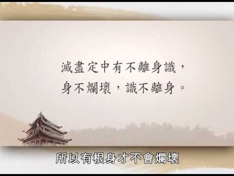 又譬如菩薩阿羅漢和俱解脫阿羅漢入了滅盡定,此時前六識俱滅,離見聞覺知,猶如眠熟、悶絕而無息脈,狀若死亡。然而《阿含經》佛說:「滅盡定中有不離身識,身不爛壞,識不離身。」意思是說:在滅盡定當中,仍然有不離身的識,所以有根身才不會爛壞。也就是說,在滅盡定當中,仍然有七、八二識存在,這仍然是不離於八識心王啊。